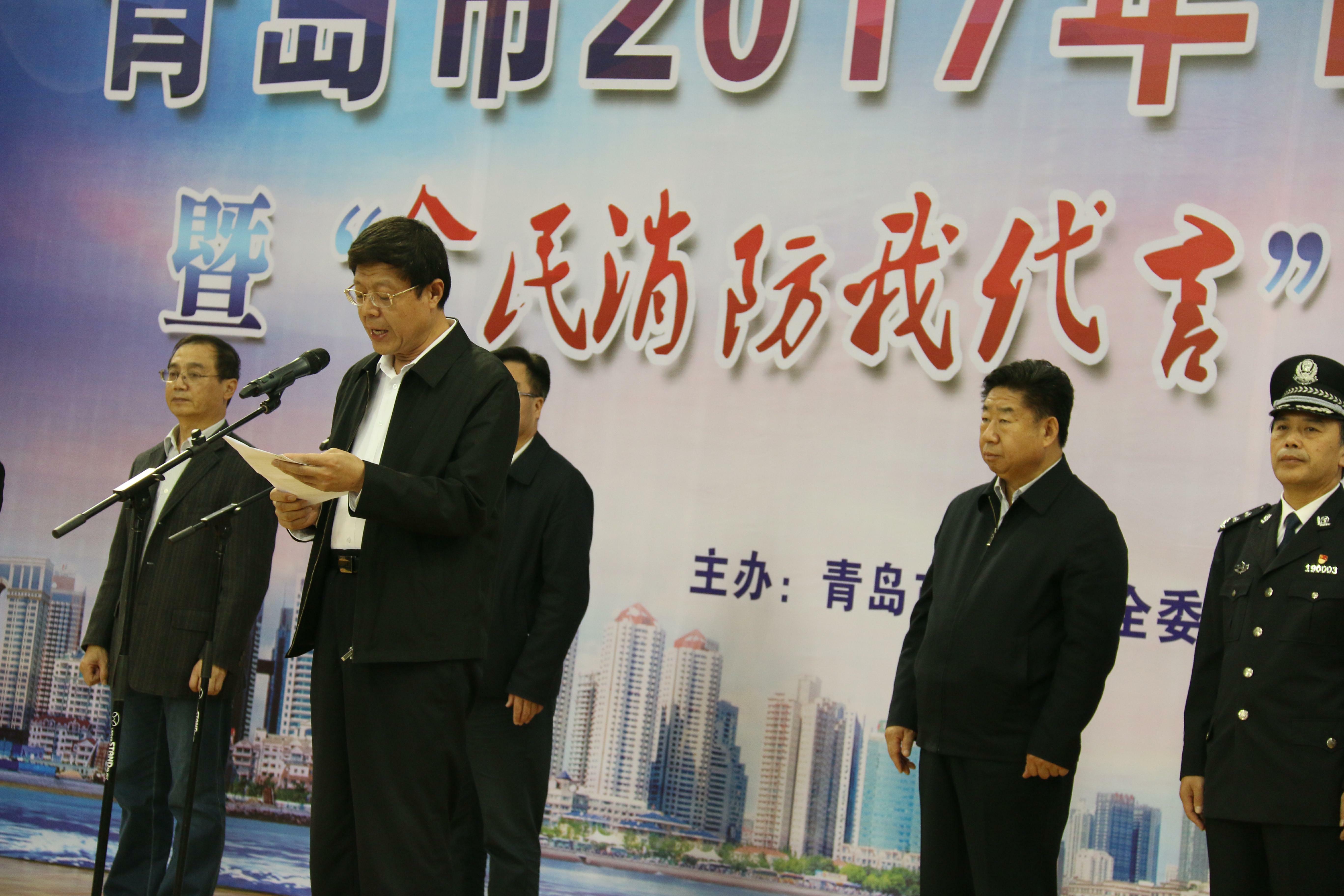 闫希军在发言中强调要深入贯彻习近平总书记关于“要把公共安全教育纳入国民教育和精神文明建设体系,加强安全公益宣传,动员全社会的力量来维护公共安全”的重要指示精神,全面发动社会各界进一步关注消防、学习消防、参与消防,从不同角度、不同层次为消防安全工作代言,推动落实单位消防安全责任,提升公众消防安全素质,为“和谐青岛”建设贡献力量。